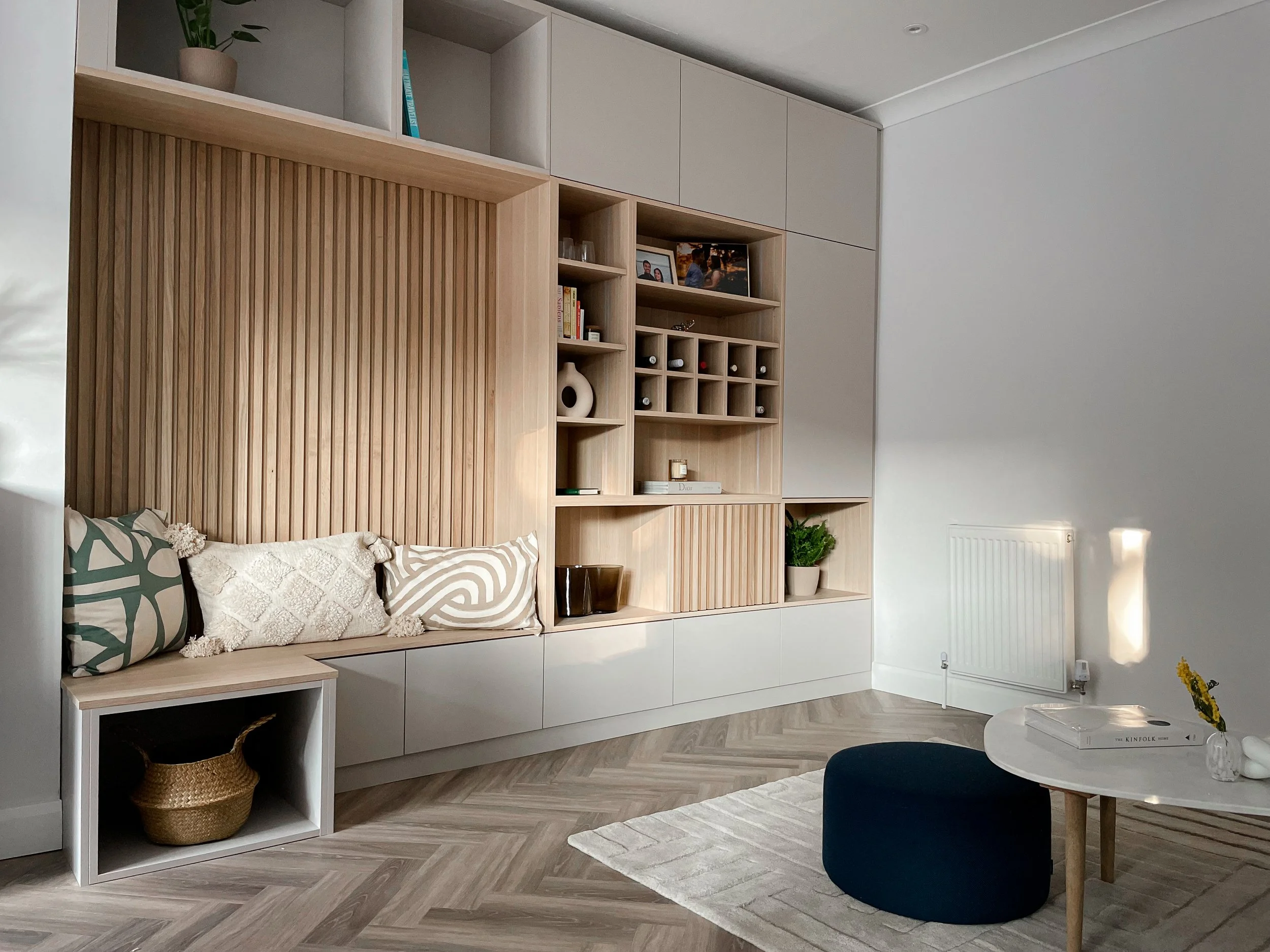 Perfectly fitted furniture and detailed joinery specifically designed to suit your needs, from a desk to a wardrobe or tv unit, shelving or other storage needs, this service will make sure to use 100% of the potential of your room.